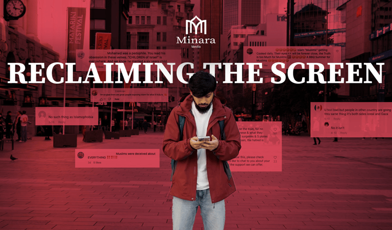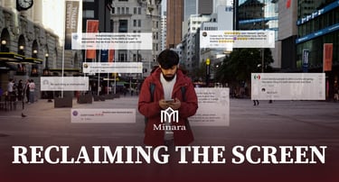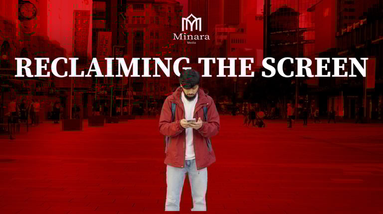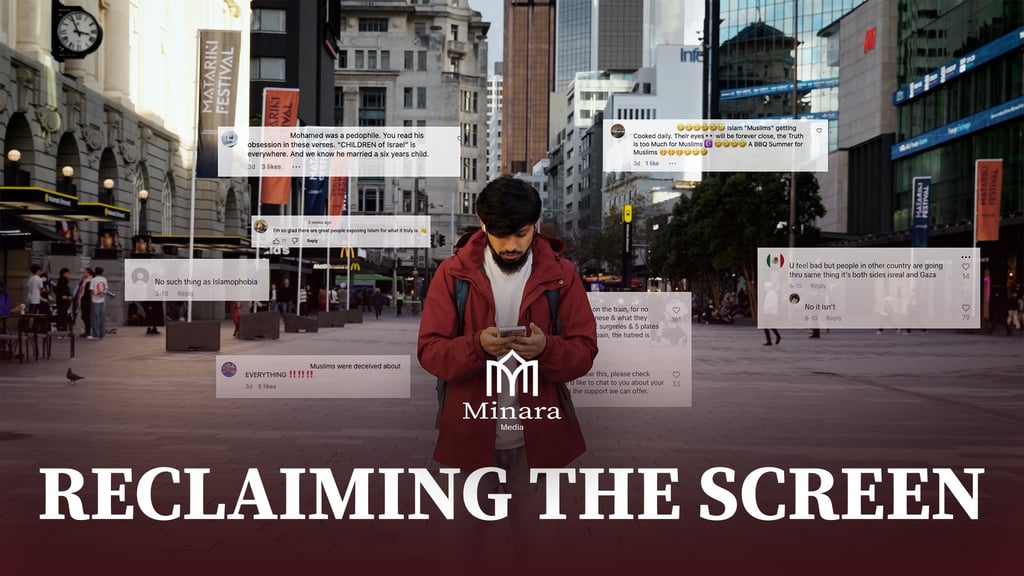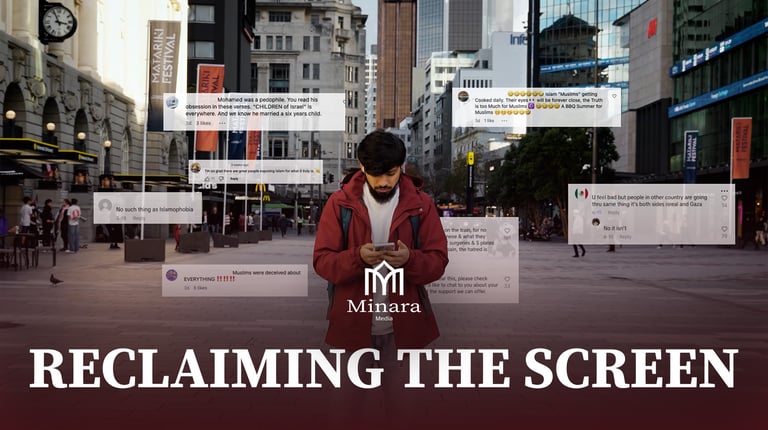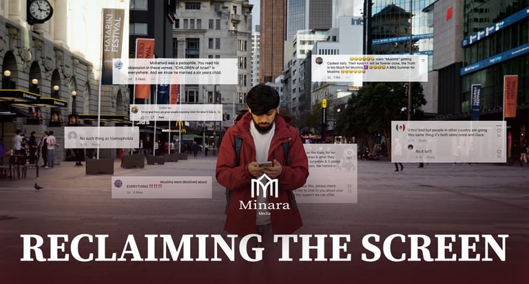 Reclaiming the Screen is 1 out of 3 launch videos for Minara Media. This piece was designed to be both confronting and hopeful, showing how online hate can overwhelm but also be dismantled. The project used a mix of sound design, colour grading, and VFX to build tension through hate comments before resolving into calm clarity with the Minara Media logo. I was responsible for editing the piece, bringing together visual effects, typography, and pacing to match the emotional journey.