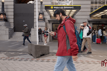 Sound design was key to carrying the emotional journey. I layered four main elements: city ambience at the start to ground the scene, heartbeats and notifications that escalated as more comments appeared, and glitch effects to amplify the collapse. As the tension peaked, the heartbeat slowed and resolved into stillness when the subject looked up from his phone.